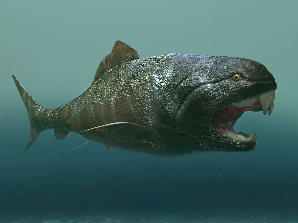 Dunkleosteus lived hundreds of millions of years before dinosaurs. This armored fish ruled the Devonian seas, and although it technically had jaws, it had no traditional teeth.