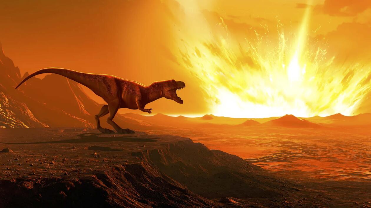 Later, the Cretaceous–Paleogene extinction ended the reign of non-avian dinosaurs when an asteroid impact triggered global fires, darkness, and climate disruption.